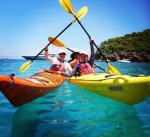 Explorez l’île d’Agistri en kayak, entre criques sauvages et eaux cristallines. Kayak, snorkeling, collations et photos inclus pour une expérience nature complète.