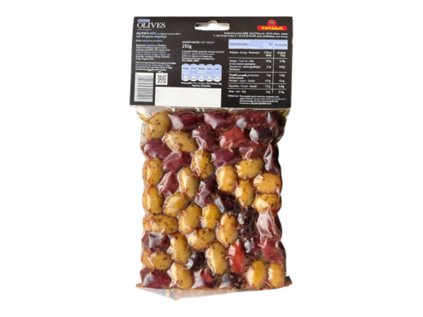 Le sachet contient plusieurs variétés d’olives grecques, sélectionnées pour leur goût unique et leur texture parfaite.
