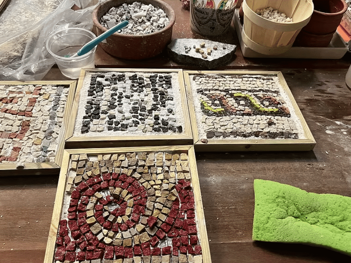- Que fabrique-t-on concrètement pendant l’atelier de mosaïque à Athènes ?