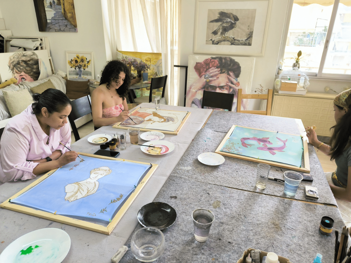 Η εμπειρία είναι προσβάσιμη τόσο σε αρχάριους όσο και σε έμπειρους ερασιτέχνες και ξεκινά με την ανακάλυψη του επαγγελματικού εξοπλισμού ζωγραφικής μεταξιού: στηρίγματα, πινέλα, βαφές, πλαίσια και εργαλεία ακριβείας. Θα μάθετε να κυριαρχείτε στην ανάμειξη χρωμάτων, στα εφέ σκιών, στη χρωματική αρμονία και στην τεχνική gutta, μια διαδικασία που χρησιμοποιείται για τη δημιουργία λεπτών, κομψών περιγραμμάτων.
