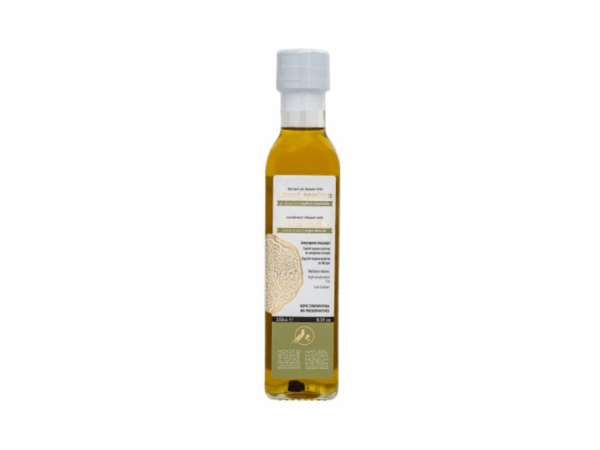 White Truffle Olive Oil unites two gastronomic treasures: the sweetness of a Greek extra virgin and the noble aroma of a rare truffle. Just a few drops awaken a subtle fragrance that is both elegant and persistent. What’s more, the presence of real white truffle fragments enhances the aromatic richness. As a result, every dish gains in depth and reveals an incomparable gourmet dimension. Finally, this refined alliance instantly transforms your creations into exceptional sensory experiences.